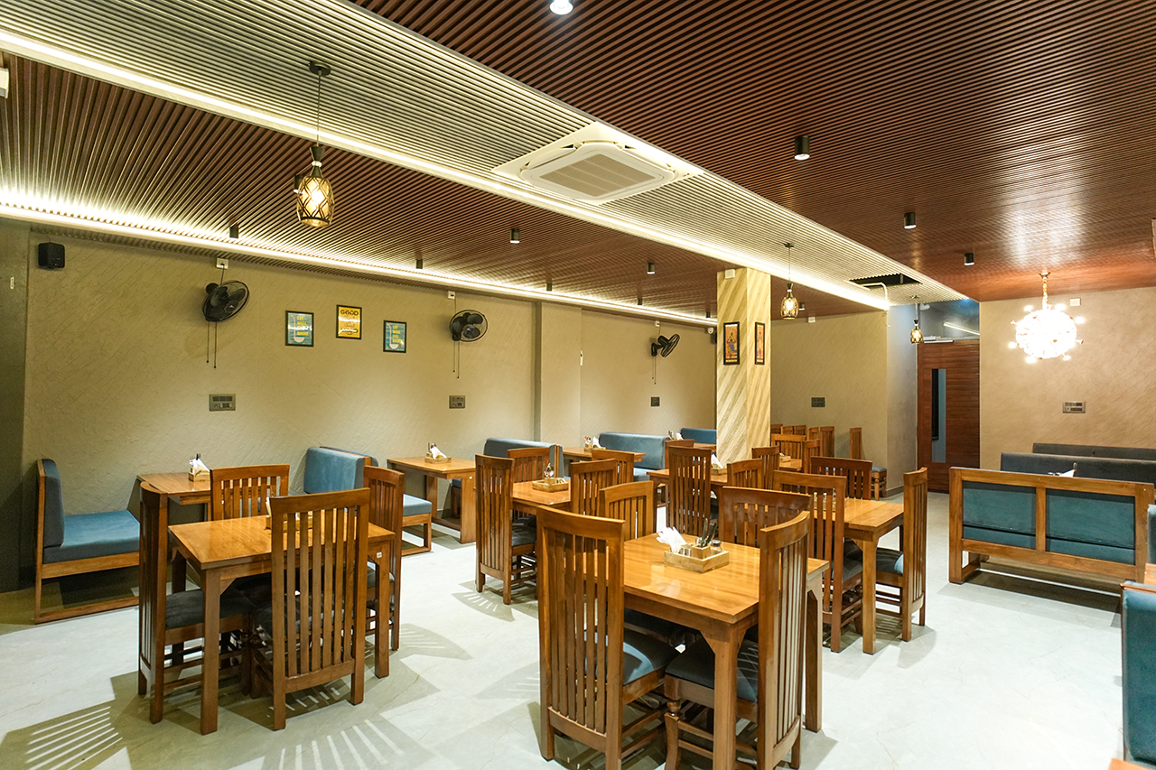 At Hotel Rukmani, every meal is a celebration of vegetarian cuisine, served with a view that enhances the overall dining experience.